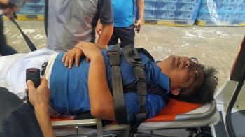 30일 오후 2시경 기아자동차 비정규직 파업 현장에서 비정규직 노동자 1명이 기아차 원청 관리자들의 폭행으로 등뼈가 부러졌다. 부상자 이동우 조...