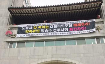 택시노동자 6명이 공무원, 경비의 방해를 뚫고 전주시청 점거‧봉쇄에 성공했다. 노동자들은 31일 오전 10시 40분경 시청 4층 기와지붕 아래를...