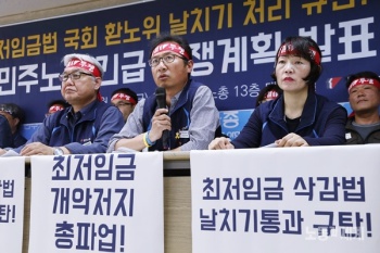 전국민주노동조합총연맹(위원장 김명환, 민주노총)이 28일 최저임금법 개악 저지를 위한 총파업에 나선 가운데, 국회는 최저임금 산입범위를 확대하는...