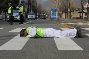 쌍용자동차 노동자들과 조계종 사회노동위원회 스님들이 12일 조계사부터 청와대까지 오체투지를 벌였다. 이들은 쌍차 해고자 130명에 대한 원직 복...