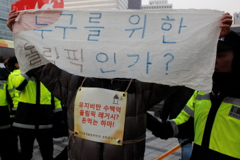 평창동계올림픽 서울 성화봉송 중 올림픽을 반대하는 기습 시위가 벌어졌다. 문화연대를 비롯한 시민단체 활동가 십여 명은 13일 서울역에서 광화문으...