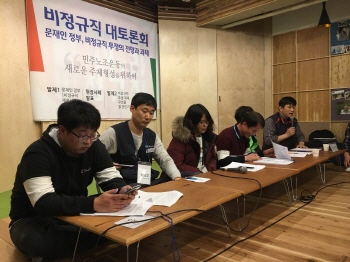 비정규직 노동자들이 모여 문재인 정부의 비정규직 정규직 전환 정책을 비판하고, 비정규직 운동 비전을 모색하는 자리를 열었다. 특히, 노동운동의 ...