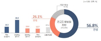 전교조 합법화 적극 찬성은 18.3%, ‘찬성하는 편이다’는 38.5%, ‘반대하는 편이다’는 13.4%, 적극 반대는 12.7%, 모름·무응답...