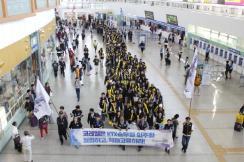KTX 승무원 400여 명 첫 파업…“용역 자회사 끝내자”[1]