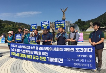 민주노총이 정부가 요구하는 사회적 대화에 앞서 노정 교섭, 노조할 권리 보장이 선행돼야 한다고 주장했다.