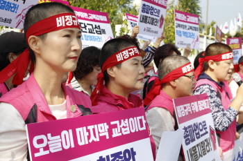 문재인 정부가 학교 비정규직의 정규직 전환을 거부했다. 교육부는 11일 기간제 교원, 영어회화전문강사(영전강), 초등스포츠강사를 정규직 전환 대...