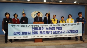 경북대병원 청소노동자들이 병원 측에 노조파괴를 자행하고 있는 용업업체와의 계약을 즉시 해지하라고 촉구했다.