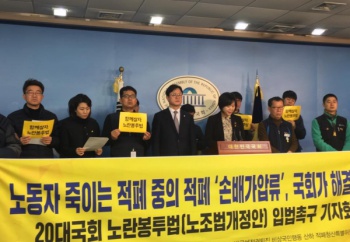 노동계 시민사회단체가 노조법 개정을 요구하며 “노동자를 죽이는 적폐 중의 적폐 ‘손배가압류’를 국회가 해결해야 한다”고 목소리를 높였다.