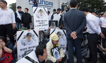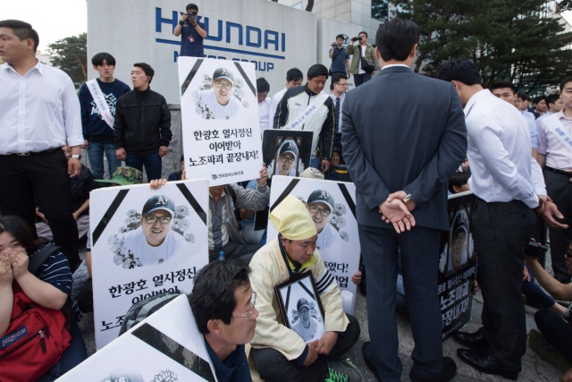 한광호 열사 유족이 현대차그룹 양재동사옥 앞에서 단식농성에 돌입했다. 금속노조와 유성범대위는 유족의 단식농성과 함께 현대차와 유성기업을 상대로 ...
