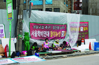 지난달 30일, 학교 비정규직 노동자들이 서울시교육청 주차장에서 단식 농성을 시작했다. 그날 밤 경찰과 교육청 직원들은 퇴거를 요구했다. 하지만...