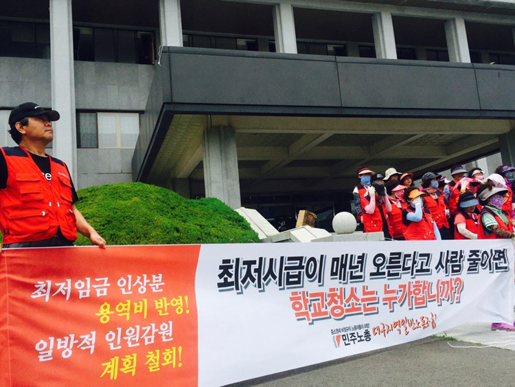 대구가톨릭대학교가 올해 최저임금 인상을 이유로 정년퇴직자 발생에 대해 신규고용을 하지 않는 방식으로 청소노동자 인원을 줄였다.