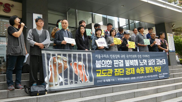 사법부의 판결에 항의하며 노역을 선언하고 구치소에 들어간 여성 노동자에게 서울구치소가 속옷탈의 검신을 강제 진행한 것으로 드러나 논란이 일고 있...
