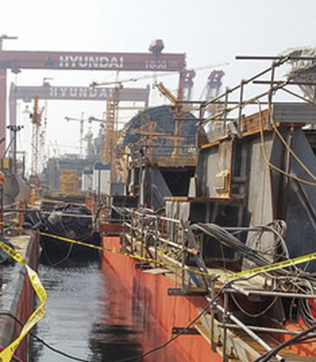 지난 2월 21일 현대중공업에서 작업 중이던 ㅈ씨가 산업재해로 숨진 지 채 한 달도 되지 않아 아찔한 사고가 또 발생했다.