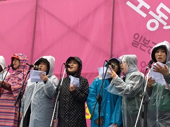 여성노동자들이 서울광장에 모여 정부의 저성과자 해고지침 철회와 여성에게 불리한 임금체계 개선, 보육과 돌봄의 국가 완전 책임제를 주장했다.