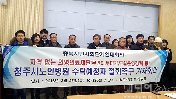 충북시민사회단체연대회의(아래 연대회의)는 청주시 측에 청주시노인전문병원(아래 노인병원) 새 운영자로 선정된 의명의료재단이 자격이 없다며 전면 백...