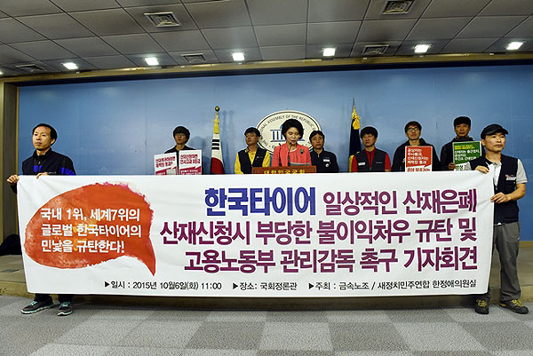 한국타이어 회사가 일상적으로 산업재해(산재)를 은폐하기 때문에 동종사 대비 낮은 재해율은 ‘거짓’이라는 주장이 나왔다.