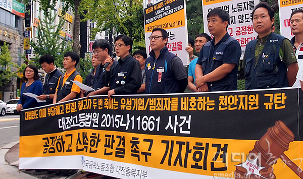 금속노조와 금속노조 대전충북지부는 유성기업이 같은 사유로 재차 해고한 11명의 노동자에 대해 부당해고 항소심을 다루는 대전고등법원에 공정한 판결...
