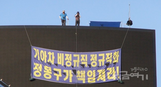 금속노조 기아자동차지부 화성지회 사내하청분회 최정명 대의원과 한규협 분회 정책부장의 농성이 60일을 넘기면서, 이들이 올라 있는 전광판 관리 업...