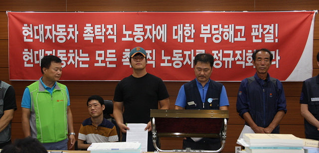 7일 중앙노동위원회는 현대자동차에서 촉탁직으로 일하다 해고된 박점환(25) 씨에 대해 부당해고 판정을 내렸다. 노동단체 관계자들은 “현대차가 촉...