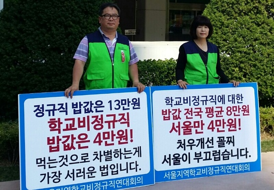 학교에서 일하는 17개 시도교육청 소속 정규 직원은 일제히 한 달에 13만원의 밥값(정액급식비)을 받는 반면, 4개 시도교육청 소속 비정규 직원...