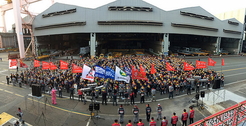 현대중공업사내하청지회가 강환구 현대미포조선 사장 퇴진 운동을 벌인다. 현대중공업하청지회와 금속노조 울산지부, 민주노총 울산지역본부 등 50여 명...
