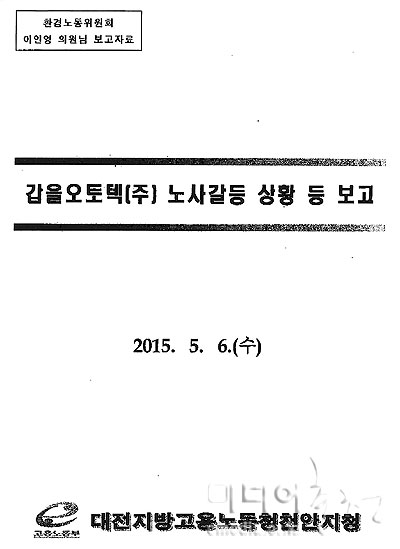 고용노동부 천안지청(아래 노동부)이 갑을오토텍 신종 노조파괴 사건에 대해 주요 사실관계를 정확하게 파악하지 않고 왜곡해 국회의원 등에게 보고했다...