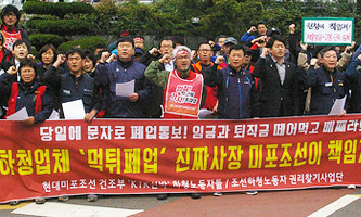 현대미포조선 하청업체 KTK선박 노동자 80명과 조선하청노동자 권리찾기 사업단 60명은 16일 오전 10시 30분 현대미포조선 정문에서 기자회견...