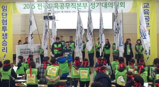민주노총 공공운수 전국교육공무직본부는 지난 달 28일 오후 서울 구로구청 대강당에서 2015년 전국대의원대회(대대)를 열어 ‘4월 총파업’을 진...