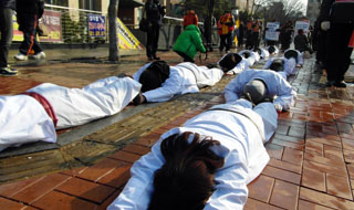 1년간 지켜온 농성장을 정리하며 노동자들은 길 위에서 오체투지를 시작했다. 오랜 투쟁에 몸과 마음이 상할 대로 상한 터라 주위의 만류도 있었지만...