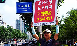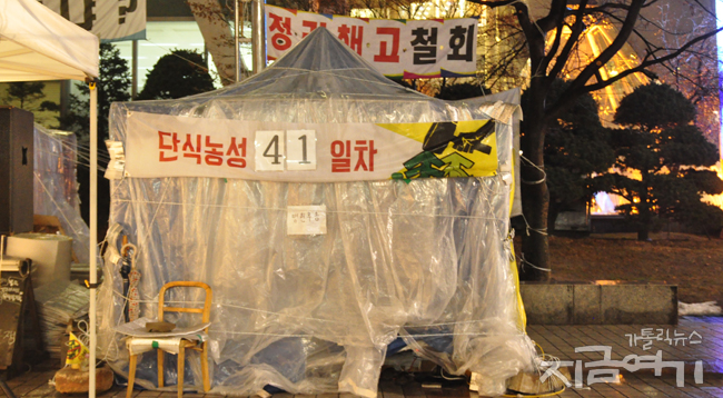 이유 없는 정리해고에 대한 코오롱 본사의 입장 확인과 복직을 요구하며 단식 농성을 시작한 최일배 코오롱 정리해고 분쇄투쟁위원장이 단식 42일 만...