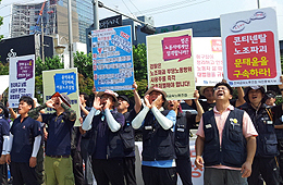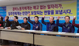 양대노총과 정당, 시민사회 등 17개 단체들은 25일 오후 1시, 민주노총 대회의실에서 기자회견을 열고 ‘경비노동자 대량해고 대책마련 및 노동인...