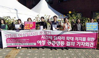 여성노동자들이 정부의 시간선택제 일자리 활성화 대책을 즉각 폐기할 것을 요구했다. 정부가 지난 15일 발표한 ‘시간선택제 일자리 활성화 후속, ...