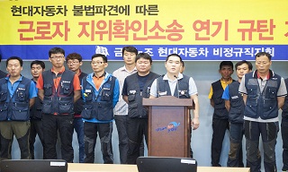 현대자동차 사내하청 노동자 근로자지위확인 소송에 대한 서울중앙지법의 지난 판결에 따라 모든 사내하청 노동자의 정규직 전환을 요구하는 목소리가 다...