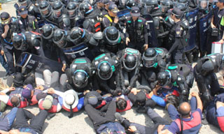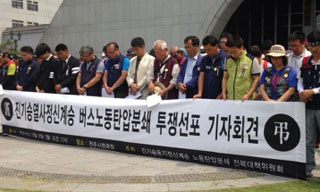 지방선거 투표일인 6월 4일 오전, 부당해고에 항거하면서 스스로 목숨을 끊은 버스노동자의 명예회복을 요구하며 시작된 노조의 승무거부 투쟁을 경찰...