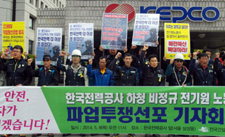 전봇대, 송전탑 등에서 배전작업을 하는 비정규직 전기원 노동자들이 5월 말 파업투쟁을 선포했다. 원청인 한국전력공사(한전)가 비용절감을 이유로 ...