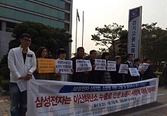 삼성전자 수원사업장에서 노동자가 질식사망 한 사고에 대한 철저한 수사와 삼성처벌을 촉구하는 목소리가 높다. 10일 오전 삼성바로잡기운동본부와 반...