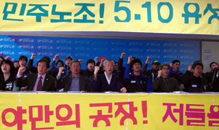 이정훈 유성기업 영동 지회장의 고공농성이 172차에 접어든 2일 오후 2시, ‘유성 희망버스’ 기획단은 민주노총에서 기자회견을 열고 ‘5.10 ...