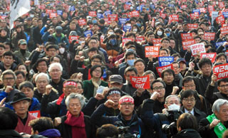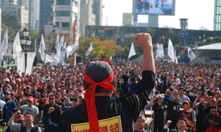 박근혜 대통령 취임 1주년을 맞은 25일, 민주노총 소속 철도노조와 삼성전자서비스지회, 대학청소노동자 등 총 867개 사업장은 동시 파업을 단행...