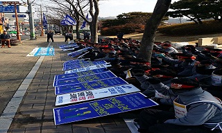 한국수자원공사에서 청소, 시설관리 업무를 위탁받은 신규용역업체로부터 계약 해지된 비정규직 노동자 10명이 한 겨울에 집단 단식농성과 동시에 천막...