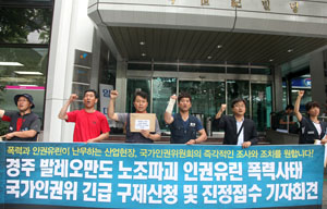 경주지부 발레오만도 지회노동자들이 노조활동 보장을 요구하며 7월11일 현재 사흘째 공장 안 농성을 벌이고 있다. 경주지부 소속 조합원 80여 명...