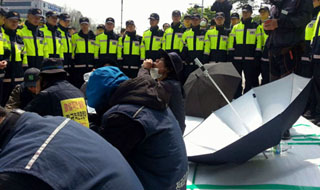 경찰은 6일 오전 10시 30분경부터, 농성 중이던 비정규직 노동자들을 에워싸고, 노동자들의 가방과 지갑, 옷, 침낭이 들어있는 차량 두 대를 ...