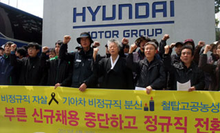 금속노조와 현대차 울산, 전주, 아산 비정규직3지회, 기아차 광주, 소하리, 화성 사내하청3분회 등 조합원 1400여 명은 26일 오후 4시, ...
