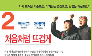 백석근-전병덕 후보는 8일 오전, 후보 사퇴서를 발표하고 “민주노총 7기 임원선거 기호2번 위원장 후보 백석근, 사무총장 후보 전병덕은 후보를 ...