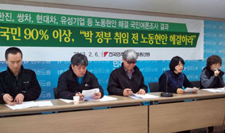 국민들 90.8%가 박근혜 정권 출범 전, 이미 발생한 노사문제를 해결해야 한다고 밝혔다. 또한 77.6%가 쌍용차 문제 해결을 위해 국정조사가...