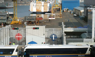 한진중공업 공장안에서 농성을 벌이던 한진중공업지회 조합원 등 6명이 경찰에 연행됐다. 이날 회사 측은 공장에 투입한 30여 명의 용역을 철수시킨...