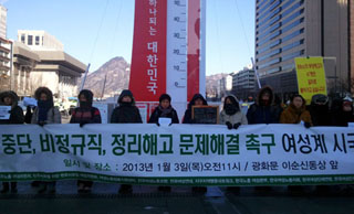 민주노총 여성위원회와 한국노총 여성본부, 민변 여성위원회, 한국여성민우회, 한국성폭력상담소 등 11개 여성, 노동단체는 3일 오전, 광화문 광장...