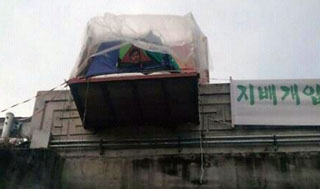 홍종인 금속노조 유성기업 아산지회장이 21일 오후 8시, 유성기업 정문 앞 굴다리에서 고공농성에 돌입했다. 홍 지회장은 국정감사 등을 통해 회사...