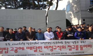 ‘비정규직 없는 세상만들기 네트워크’ 등 노동·사회단체들은 19일 서울 양재동 현대자동차 사옥 앞에서 기자회견을 열고 정몽구 현대자동차 회장 구...