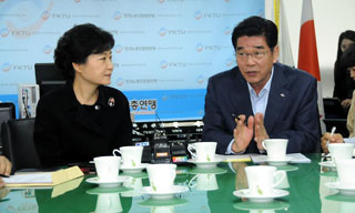 박 후보는 22일 오전 10시 30분, 한국노총을 방문해 문진국 위원장, 김동만 부위원장 등 간부들과 노동현안에 대한 의견을 나눴다. 박 후보는...