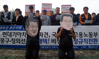 전국금속노동조합(위원장 박상철)과 현대차지부, 현대차사내하청지회 등은 10일 오후, 국회 앞에서 기자회견을 열고 환노위가 이번 고용노동부 국정감...